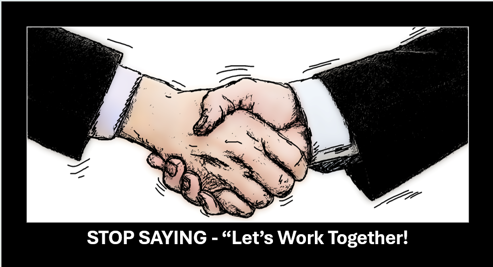 Nobody actually means let’s work together. What they mean is: I want you to pay me. All they are doing is selling but refusing to say or call it what it is.